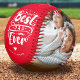 Gift your dad the ultimate recognition he deserves with a fun retro style personalised photo collage baseball that features trendy white text reading 'Best Dad Ever'. Add a touch of love with your kids' name(s) and a custom message on a red background - a versatile colour that can easily be changed to any preferred hue. Perfect for Father's Day, birthdays, or Christmas gifting.
