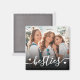 Create a custom keepsake with this personalised one-sided square magnet. It features space for one favourite photo with the word "besties" written across the bottom in a flowing script font, accented by a few small heart details. A subtle black gradient sits behind the text to help it stand out without overpowering the image.