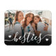 Create a custom keepsake with this personalized magnet featuring your favorite photo. “Besties” appears across the bottom in flowing script, accented by small heart details, with a subtle black gradient behind the text to make it pop.