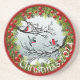 Custom Birds In Snow Pine Needles Red Berries Coaster