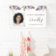 Soft watercolor purple lilacs create a pretty springtime 30th custom birthday banner. The guest of honour's photo is to the left. Happy Birthday, their name and Celebrating 30 years is to the right. All of the text can be customised.