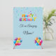 Celebrate their special day with a colourful, custom birthday greeting card! Featuring vibrant balloons, confetti, and a cheerful 'Birthday' message, this card can be personalised with the recipient's name. Choose from multiple background colour options to match their style and make it truly unique. Perfect for adding a festive touch to any birthday celebration. Order now and make their day even brighter!