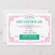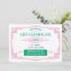 Custom Birthday Gift Certificate Card