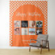 Create your own custom photo collage banner for a Birthday Party. The template is set up for you to add your custom name and your favorite photos. Your photos will automatically appear as a photo collage. The banner has a black boho style arch and a modern retro checkerboard in orange and cream. The birthday banner is complete with "Happy Birthday!" lettered in cute script calligraphy typography.