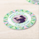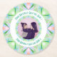 Custom Birthday Star Green Pink Photo Greeting Round Paper Coaster