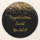 Custom Black and Gold Graduation Party Sparkle Round Paper Coaster