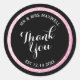 Custom Black and Pink Glitter Thank You Classic Round Sticker