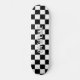 Skateboard with fun funky black and white coloured racing flags check pattern design. With room to personalise or customise with a name of your choice in clean black and white colours. Stylish original and cool cover for the trend-savvy and art-loving hip trendsetter, trendy look style motif lover.