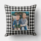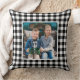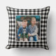 Custom Black and White Buffalo Plaid Holiday Photo Cushion