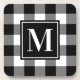 Custom Black and White Buffalo Plaid Monogram Coaster
