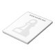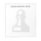 Custom black and white pawn chess piece notepad for chess lovers, grand master and other players of the game. Custom note pads with water mark logo and name. Personalised memo pad design for home, club, school or office. School / office supplies for men, women and kids. Customisable background colour. Use ALT code to change the icon into a pawn, rook, bishop, knight, queen or king. ♕♔♘♗♖♙ ♚♛♞♝♜♟