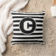 A custom throw pillow that has a black and white striped pattern with a monogram logo in the centre. You can personalise this pillow with your initial by using the custom template. This product makes a great gift for any occasion.