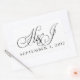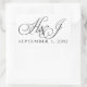 Custom black and white wedding stickers with initials and date.