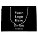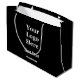 Do you need a shopping bag for your store, boutique, kiosk, or pop-up? You can turn every purchase into a marketing opportunity with these branded shopping bags. Add your company logo to this black shopping bag. Also, you can edit the text to add your business name and website. The text is white. There are no minimums for this shopping bag.