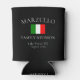 This custom can cooler is a great souvenir favour for your special Italian family reunion. The front and back features a flag of Italy with your family name "Marzullo Family Reunion, date and location. The bottom text is "Alla Famiglia". Modern light grey typography. This example is specific for an Italian family, but the design is fully customisable so you can make it your own.