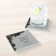 Custom Black Floral Wedding Anniversary Glass Coaster