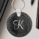 Easily personalize this trendy elegant keychain design featuring pretty black sparkling glitter on a black brushed metallic background.
