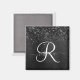 Easily personalise this trendy elegant magnet design featuring pretty black sparkling glitter on a black brushed metallic background.