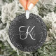 Easily personalise this trendy elegant ornament design featuring pretty black sparkling faux glitter on a black brushed metallic background.