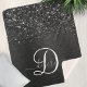 Custom Black Glitter Sparkle Monogram Sherpa Blanket