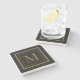 Custom Black & Gold Framed Monogram Stone Coaster