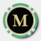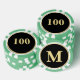 Create your own custom, personalised, 100 denomination, modern faux gold monogram on black background, monogrammed christmas green poker chips, in 9 vibrant colours, and featuring textured surface for easy stacking. Simply type in your initials / monogram, to customise. You may even change the denomination from 100 to one of your own choice. While you add/design, you'll be able to see a preview of your creation, throughout. One-of-a-kind chips, great as wedding favours, drink tickets, golf marker, charming keepsakes for weddings, tokens for drinks at events, favours for birthdays, bachelorette parties and corporate events, bachelor party gifts, hosting a poker night, and for home - local - club poker tournaments. Or to just add an element of style to the table. Make a great gift for birthday, fathers day, mothers day, christmas, holidays, new years, wedding, marriage anniversary, and more, for your loved ones, mum, dad, husband, wife, bride, groom, grandpa, grandma, golfer friends, poker player, partner, and family.