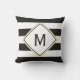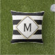 A large black monogram is in the centre. The initial is border by black, white and gold diamonds. Thick black and white stripes form the background.