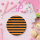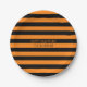 Custom black and orange Halloween party paper plates. Add your own personalised happy holiday greeting. Fun party supplies, decorations and disposable throwaway accessories for costume party, trick or treat, night gathering, bbq, dinner, birthday, wedding etc. Available in small and large. Change the quantity to get the cheapest bulk price. Suitable for men women and kids.