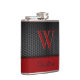 Custom Black Red Faux Leather Monogrammed Initial Hip Flask