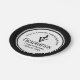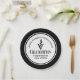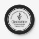 This modern custom black veterinary medicine school graduation party paper plate features the college graduate name in elegant script for the class of 2025. Customise with your university under the veterinarian medical caduceus for great commemorative graduation decor for a DVM.