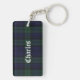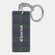 Stylish key chain done in the blue and green Scottish Black Watch tartan plaid pattern. Bold white old world style text, on the front and back, is ready to personalise for yourself or as a great gift idea.