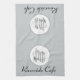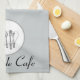 A simple restaurant design with custom script text featuring a set of silverware on a pretty white table napkin embellished in greys and black. Customise It to add your logo, change background colours and more, even save your design for later.