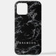 Contemporary white marble stripes texture stripes pattern on black. With room to customize with name, monogram or initials of your choice. Beautiful, modern and cool cover for the trend-savvy and art-loving hip trendsetter, artsy motif lover who wants to protect their phone from dust and dirt, wear and tear. This design is available Apple iPhone 10 or X, XR, XS , 11, 12, and 13 Mini and Pro Max cellphone cases. Show off your personal style, look fashionable trendy and feel stylish with a unique design on a mobile device accessory of your choice.