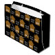 Stylish Custom BLESS YOUR HOME Realtor Client large gift bag, with a gold glitter house in a tiled pattern against a rich black background. The text says BLESS YOUR HOME. The BLESS YOUR is customisable, so you can replace with your initials or create your own text of similar length. This would make an ideal GIFT BAG for a Christian real estate business or religious realtor for your clients' thank you or closing gifts at Christmas. Choose from a wide selection of realtor cards, client gifts and resources designed by Berean Designs. Other sizes listed separately.