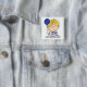A little blonde haired boy with a blue balloon and blue shirt on a button you can customise with your choice of text, his name, and age! Perfect for all who are attending the birthday party!