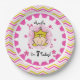 Blonde Princess 7th Birthday paper plates features a little princess with blonde hair wearing a golden jewelled tiara surrounded by pink flowers, text that reads I'm 7 Today, a border of chevron stripes of hot pink, light pink, gold, and white, and an area you can personalise with her name! The seventh princess birthday party will be off to a great start with these colourful princess paper plates. Look for the matching napkins, T-shirts, buttons, bags, and more!