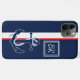 Contemporary dark blue anchor on a blue, white, and red coloured stripes pattern. With room to customise or personalise with a monogram or initials of your choice. This design was created for the boat captain, the sailor, the boater, the water sport, boating, sailing, ocean, summer beach, or sea lover. Beautiful, modern, and cool cover for the trend-savvy and art-loving hip trendsetter, artsy motif lover who wants to protect their phone from dust and dirt, wear and tear. This design is available in Apple iPhone 6, 7, and 8 Plus, 10 or X, XR, XS, 11, 12, 13 Mini, 14, 15 Plus, and Pro Max cellphone cases. Show off your style, look fashionable trendy, and feel stylish with a unique design on a mobile device accessory of your choice.