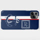 Contemporary dark blue anchor on a blue, white, and red colored stripes pattern. With room to customize or personalize with a monogram or initials of your choice. This design was created for the boat captain, the sailor, the boater, the water sport, boating, sailing, ocean, summer beach, or sea lover. Beautiful, modern, and cool cover for the trend-savvy and art-loving hip trendsetter, artsy motif lover who wants to protect their phone from dust and dirt, wear and tear. This design is available in Apple iPhone 6, 7, and 8 Plus, 10 or X, XR, XS, 11, 12, 13 Mini, 14, 15 Plus, and Pro Max cellphone cases. Show off your style, look fashionable trendy, and feel stylish with a unique design on a mobile device accessory of your choice.