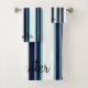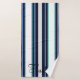 Embrace a touch of sophistication with our colourful blue striped monogram bath towel. The design showcases a large monogram family name in a classic cursive font. Elevate your bathroom's charm with this unique and personalised gift that seamlessly combines modern and classic elements.