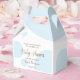 The chic mum-to-be will be impressed with this modern design that's equivalent to her style and yours. Personalise the details and text on this custom soft blue and white favour boxes for an expected baby boy. Use these to package gift or provide them for a sweet table.
