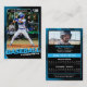 Create a personalised baseball trading card to celebrate your favourite player. This customisable template lets you add your player's name, team, stats, and photo. The Blue and black design is stylish and professional, and perfect for displaying a player's achievements.