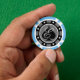 Custom blue casino poker chips for gambling party. Beautiful casino coin design with spade icon and elegant typography. Customisable marker colours. Available in blue, green, red, pink, yellow, orange and more. Personalise with custom name, unique monogram, initials, dollar amount or lucky number. Classy script typography. Luxury gift ideas. Also great as Las Vegas destination Birthday or wedding party favour gift. Double sided print.