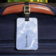 I was happy with the acrylic tag but it came with a thin leather strap to attach the tag to luggage (like a cat collar). I replaced the strap with a metal ring off of a key ring as the leather strap would come undone or break easily as luggage is sometimes handled without much care by airlines. Printing is great. Colours and positioning of the design I put on the tag were perfect. Very pleased.