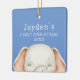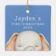 Custom Blue Cute Elephant Baby Boy First Christmas Ceramic Ornament