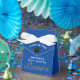 This modern custom high school reunion party favour box features the high school alumni name in white script on a blue background for a 10th, 20th, or 30th celebration.