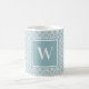 Custom monogram mug with personalised family initial. Featuring a cute modern medallion pattern on a misty blue background, this mug will be a family favourite.