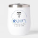 This blue custom medical school graduation wine tumbler gift features modern typography for a class of 2024 graduate. Customise with your graduating year under the caduceus for great personalised nurse or doctor keepsake for a graduating physician.