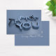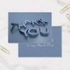 Business size cards that say "Thank You" in 3D silvery blue on one side, and on the reverse you can type you own message on the blue colored background.