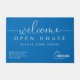 Introducing our custom open house welcome doormat, designed specifically for real estate agents. It's more than just a mat—it's a statement piece that reflects your professionalism and commitment to excellence. Shown in a classic blue and white palette with a modern elegant script font for "welcome", though all colours are editable. Personalise the template with your name and contact information as well as your logo. © Kimbellished, LLC
