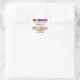 Cute customisable Teacher's Welcome to My Class stickers, showing a bright colourful WELCOME followed by wording which reads (insert your name here)'S CLASS IS A HAPPY PLACE. This text is CUSTOMIZABLE so you can add your name and class or create your own text. There is also a group of smiling face icons. You can use these Welcome stickers to welcome your new students back to school. Matching gifts and notebooks are available. Also in blue and yellow.